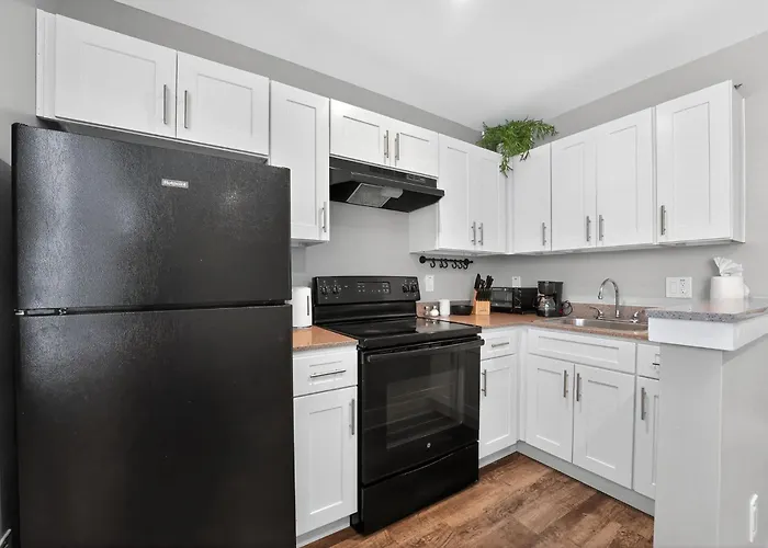 O Charming Sutton 1Br Getaway Apartamento providencia kitchenette equipada com forno e máquina de lavar loiça.